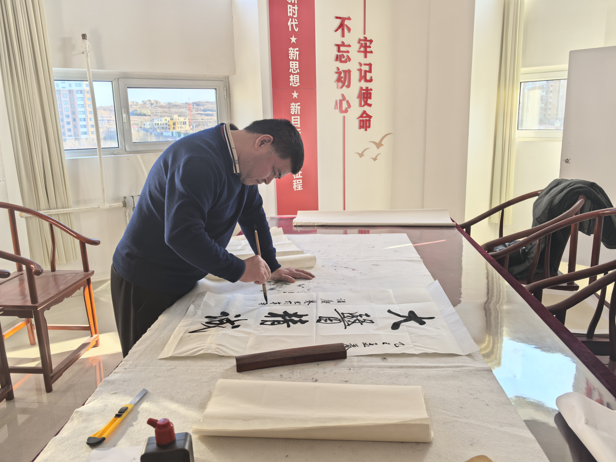 参观结束后,汪庆誉先生挥毫泼墨,为基地题写“悬壶济世”“杏林春暖”等书法作品,以笔墨传递中医药文化的深厚底蕴,表达对中医药事业发展的美好祝愿。