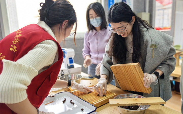 活动分为中药炮制体验大山楂丸的制作和木工手作体验两个部分。其中中药炮制体验活动别具法治深意,从《丹溪心法》中大山楂丸的精准配比到搓丸过程中刚柔并济的力道,恰如判决文书的严谨规范与家事调解的温情司法异曲同工,传统医药文化和现代司法实践,她们在体验中找到了跨时空共鸣。