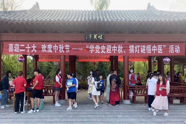 2022年是党的二十大召开之年,博物馆积极响应学校开展迎接党的二十大系列活动,于9月10日恰逢中秋节和教师节之际,在校园岐黄亭举办“学党史迎中秋、猜灯谜悟中医”活动。