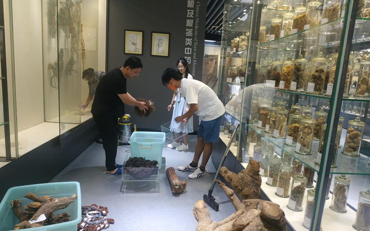 9月8日下午,徐宏举、孙亚楠、陈凯、王思雪、李亚楠等老师一起把熏库的药材重新上架布展,这次上架的药材大约有30余种,经过半天的辛勤付出,老师们把中药标本馆重新布置一新,以满足新学期我校师生、社会观众及其他各界人士参观、学习的需要。(博物馆 文/宋永刚 图/王思雪)
