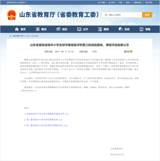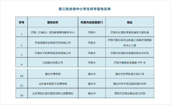 近日,山东省教育厅发布《山东省首批省级中小学生研学基地复评和第三批省级基地、课程评选结果公示》,我馆位列其中,获评第三批省级中小学生研学基地、省级中小学生优秀研学课程。