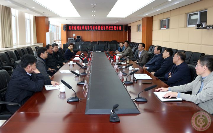 10月29日,沧州医学高等专科学校党委书记刘健等一行五人来我校进行交流访问。学校党委书记张立祥、校长袁志勇以及党委副书记战文翔、副校长田雷热情接待了来访客人并与之进行了座谈。相关部门负责人参加了座谈会。