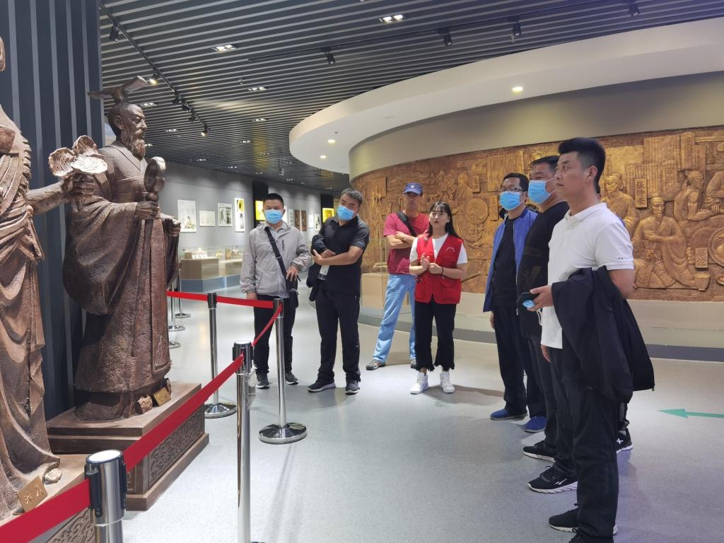 在等待客人来的过程中心情非常忐忑,客人来了以后我颤颤巍巍就开始了这次的讲解。由于太过紧张,在介绍序厅的浮雕时就开始分不清“三足金乌和玉兔捣药”。紧张不安,心里没底,在看到同伴臻臻和老师在队伍后边冲我点头和比大拇指时,仿佛一阵定心剂让我瞬间冷静了下来。然后越来越顺利,越来越从容,一直镇定的讲完了四个展馆。