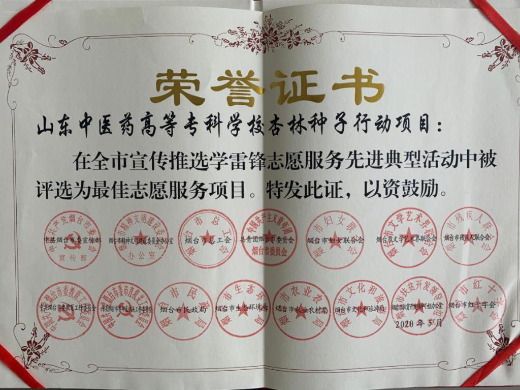 近日,由市委宣传部等15部门共同开展宣传推选学雷锋志愿服务先进典型活动中,我校杏林种子行动项目被评选为最佳志愿服务项目。此次活动旨在进一步弘扬“奉献、友爱、互助、进步”的志愿服务精神,推动志愿服务制度化、常态化,培育和践行社会主义核心价值观,充分发挥志愿服务先进典型的示范激励作用,推动形成向上向善、诚信互助的良好社会风尚。
