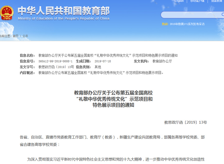 本次活动由教育部主办,经过高校自主申报、专家通讯评议、会议终审推荐、网上公示四个环节,共确定示范项目10项、特色展示项目30项。博物馆获此殊荣,是对我校在传播中医药知识、弘扬中医药文化领域所付出的不懈努力给与的充分肯定。博物馆以此为契机,继续大力弘扬中医药文化,礼敬中华优秀传统文化,为推动中医药事业的蓬勃发展贡献力量。