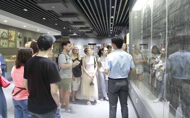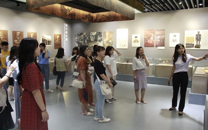 2019年7月11日下午,鲁东大学国际学生到我校博物馆开展中医药文化学习和体验活动。博物馆馆长宋永刚带领老师们热情接待了来访留学生们。