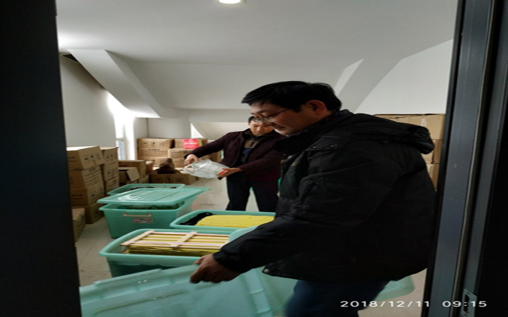 12月12日上午,徐宏举与陈凯两人一起核对库藏文物,只是我们的馆藏并不十分丰富,而两人整整用了一个上午的时间才将文物核对清楚。