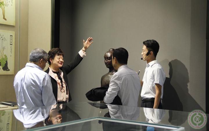 博物馆馆长宋永刚对远道而来的客人表示热烈欢迎,陈凯老师为客人讲解了中医药史馆、中医药专题馆、中药标本馆和生命科学馆等展厅。在中医药史馆,客人了解了从史前时期至民国时期整个中医的发展脉络,并敲响了两千多年前的打击乐器——复制品编钟,为中医药文化的博大精深所吸引,更为中医药学家们的精湛技术所折服;在中医药专题馆,客人详细了解了针灸铜人的历史,并与老师们深入交流了针灸绿色疗法,在直观的浸叶标本展柜前,详细询问了标本的制作方式;在中药标本馆,客人对奇特的中药材表现出了浓厚的兴趣,不时驻足拍照留念。