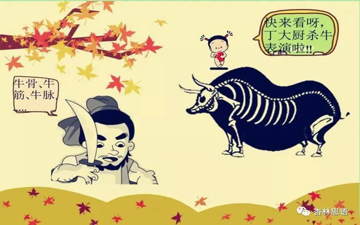 无独有偶,《庄子·养生说》中“庖丁解牛”的故事也说明了养生之道。庖丁所用之刀十九年依然锋利如新,皆是因为他不用锋利的刀去蛮横地对抗坚硬的筋肉,而是“以无厚入有间,恢恢乎其于游刃必有余地矣”。如此,牛可得解,刀可常新。
