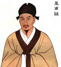 皇甫谧(mì)(215年—282年),幼名静,字士安,自号玄晏先生。安定郡朝那县(今甘肃省灵台县)人,后徙居新安(今河南新安县) 。三国西晋时期学者、医学家、史学家,东汉名将皇甫嵩曾孙。他一生以著述为业,后得风痹疾,犹手不释卷。晋武帝时累征不就,自表借书,武帝赐书一车。其著作《针灸甲乙经》是中国第一部针灸学的专著。其实,除此之外,他还编撰了《历代帝王世纪》、《高士传》、《逸士传》 、《列女传》、《元晏先生集》等书。在医学史和文学史上都负有盛名。在针灸学史上,占有很高的学术地位,并被誉为“针灸鼻祖”。挚虞、张轨等都为其门生。