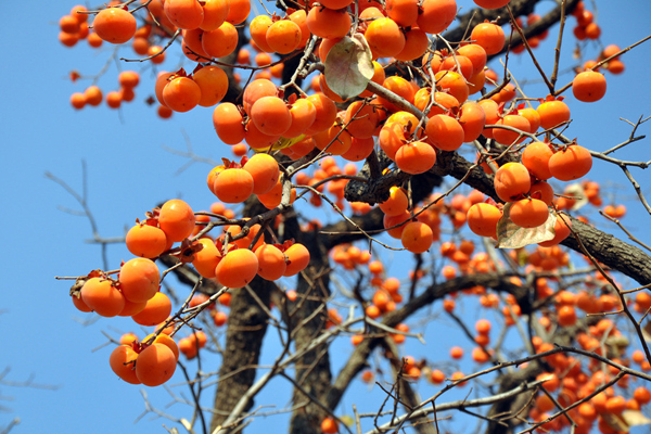 柿子是人们比较喜欢食用的果品,甜腻可口,营养丰富,不少人还喜欢在冬季吃冻柿子,别有味道。柿子所含维生素和糖分比一般水果高1-2倍左右,假如1个人1天吃1个柿子,所摄取的维生素C基本上就能满足一天需要量的一半。因为鲜柿子中含碘量很高,适宜缺碘引起的甲状腺疾病患者食用。所以,吃些柿子对人体健康是很有益的。