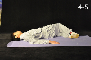 动作4:伸膝呈仰卧位,双手置于体侧,手心向下(图4-4)。